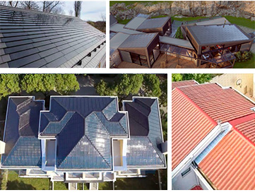 con paneles como tejas